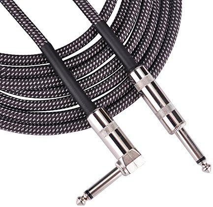 AvimaBasics Premium 15 Foot Guitar Instrument Cable – Right Angle 1/4-Inch TS to Straight 1/4-Inch TS 15 FT Tweed Cloth Jacket – 15 Feet Pro Cord 15′ Phono 6.3mm – Single (Black)